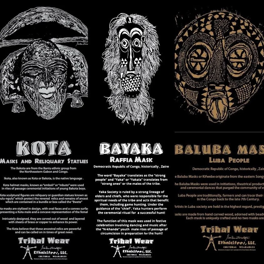 Incredible culture! Incredible history! @ethniciteesllc2969 celebrates African heritage via our TRIBAL WEAR imprint! Artist and Company Founder Sean Ramon Montague designs each mask illustration in the medium of relief block printmaking! Masks through various African tribes throughout the Motherland and a description of the function and origin of each respective mask featured on the front! #blackculture #blackculturematters #culturekeepers #africanart #loveyourculture #fortheculture #brandambassador #bowietowncenter #bowiemaryland #dmvbusiness #dmvblackownedbusiness